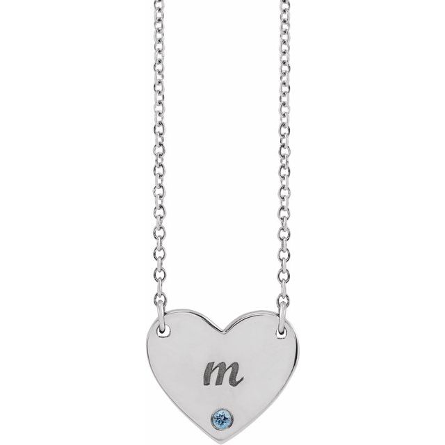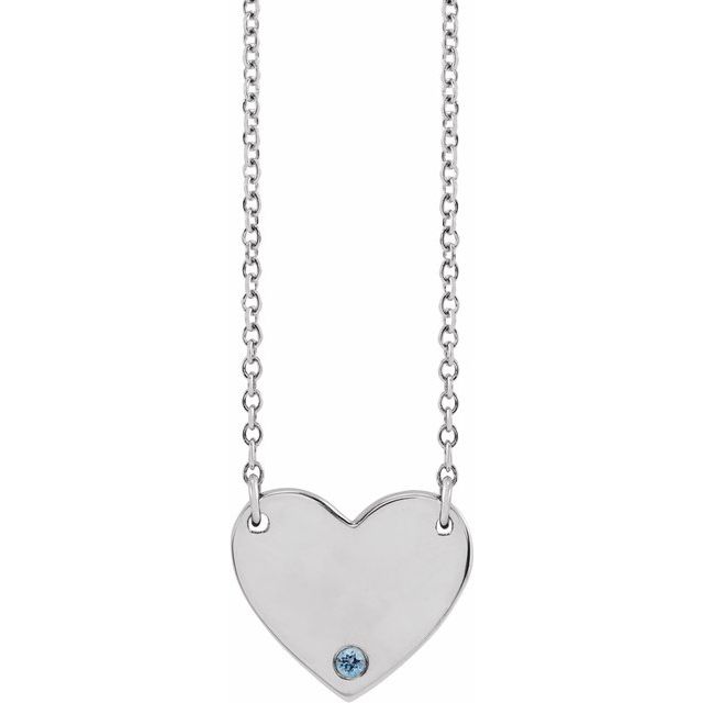 Sterling Silver Natural Aquamarine Engravable Heart 18" Necklace