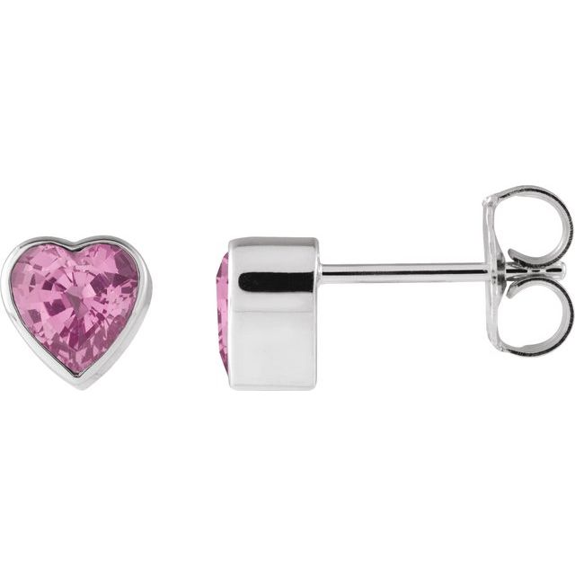 / Sterling Silver / Set / Heart / Natural Pink Sapphire / Pair / 5 X 5 Mm / Friction / Friction Backs Included / Bezel / Polished / Natural Pink Sapphire Bezel-Setstud Earrings