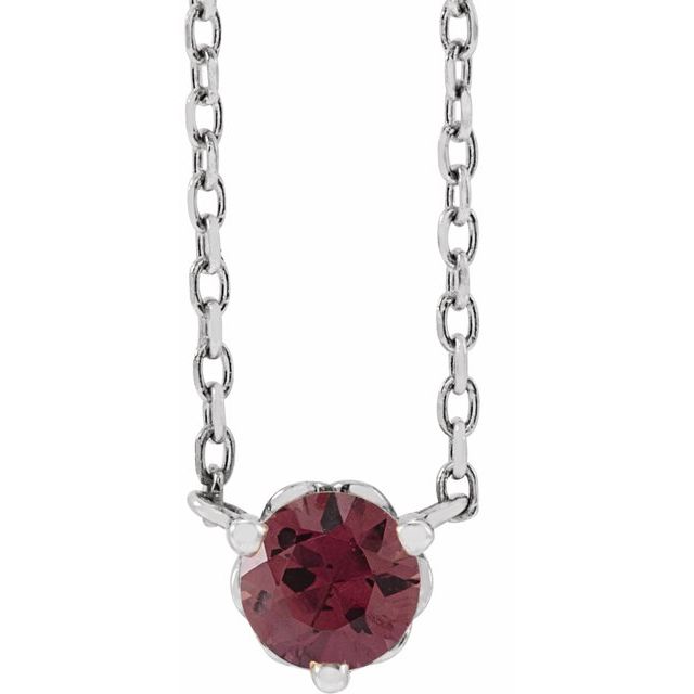 Sterling Silver Natural Rhodolite Garnet Solitaire 18" Necklace