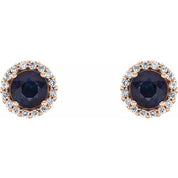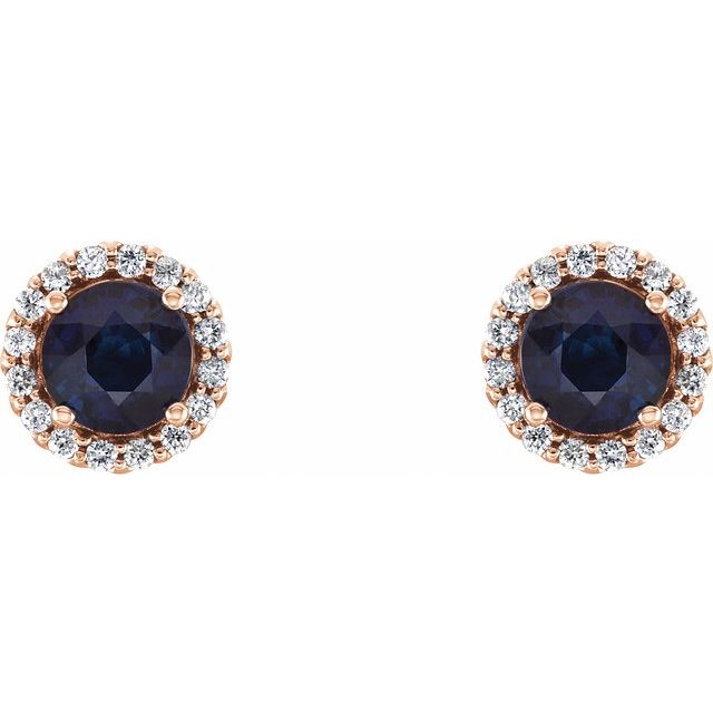 14K Rose 3 mm Lab-Grown Blue Sapphire & 1/10 CTW Natural Diamond Earrings