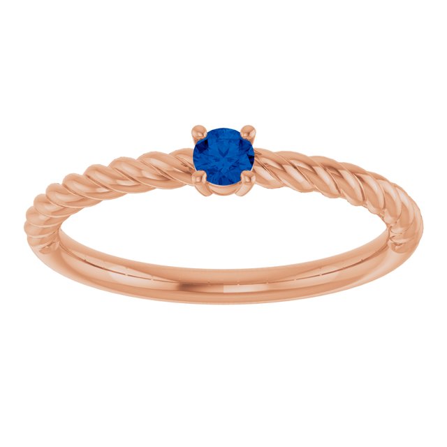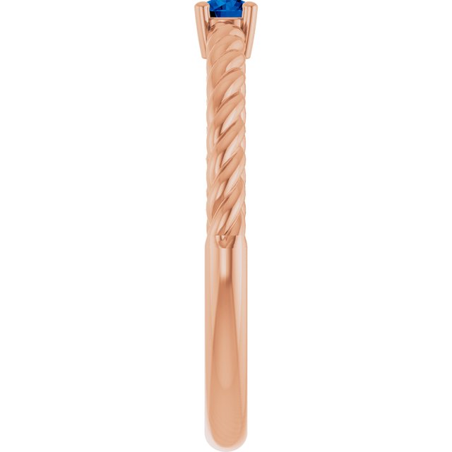 14K Rose 3 mm Lab-Grown Blue Sapphire Solitaire Rope Ring