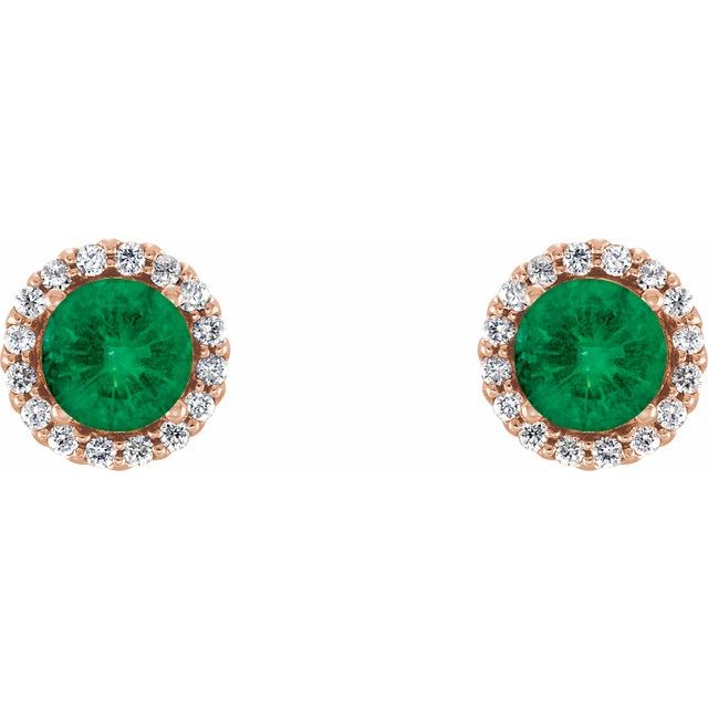 / Earring / Set / Lab-Grown Emerald / Round / 3 Mm / 14K Rose / Natural Diamond / Pair / Friction Backs Included / Polished / Lab-Grown Emerald And 1/10 Ctw Natural Diamond Earrings