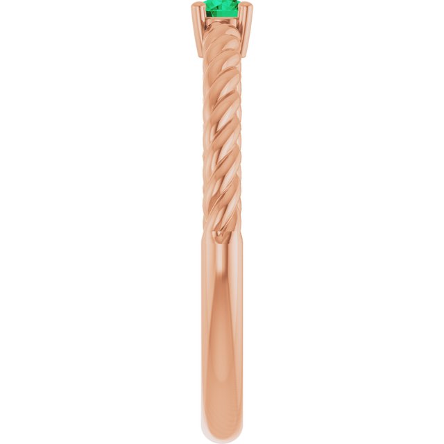 14K Rose 3 mm Lab-Grown Emerald Solitaire Rope Ring