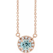 14K Rose 3 mm Natural Aquamarine & .03 CTW Natural Diamond 16" Necklace