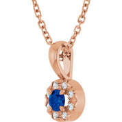 / Necklace / Set / 14K Rose / Round / Natural Blue Sapphire / 3Mm :: 0.03 Ctw / Natural Diamond / I1, G-H / 16-18 In / Polished / Natural Blue Sapphire And .03 Ctw Natural Diamond French-Set Halo-Style Necklace