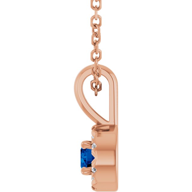 14K Rose 3 mm Natural Blue Sapphire & .03 CTW Natural Diamond 16-18" Necklace