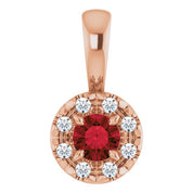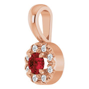 / Pendant / Set / 14K Rose / Round / Natural Mozambique Garnet / 3Mm :: 0.03 Ctw / Natural Diamond / I1, G-H / Polished / Natural Mozambique Garnet And .03 Ctw Natural Diamond French-Set Halo-Style Pendant