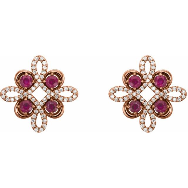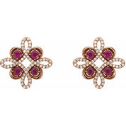 14K Rose Natural Ruby & 1/4 CTW Natural Diamond Earrings