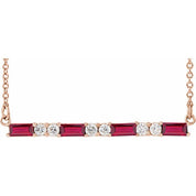 / Necklace / Set / 14K Rose / Straight Baguette / Natural Ruby / 4 X 2Mm :: 1/6 Ctw / Natural Diamond / I1, G-H / 16-18 In / Polished / Natural Ruby And 1/6 Ctw Natural Diamond Bar Necklace