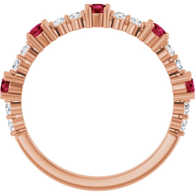 / Ring / Set / 14K Rose / Natural Ruby / Round / 2.5 Mm / Natural Diamond / Polished / Natural Ruby And 1/6 Ctw Natural Diamond Stackable Ring
