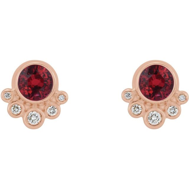 / Earring / Set / Natural Ruby / Round / 5 Mm / 14K Rose / Natural Diamond / Pair / Friction Backs Included / Polished / Natural Ruby And 1/8 Ctw Natural Diamond Earrings