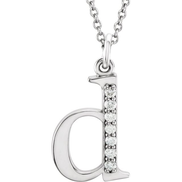 14K White .03 CTW Natural Diamond Lowercase Initial D 16" Necklace