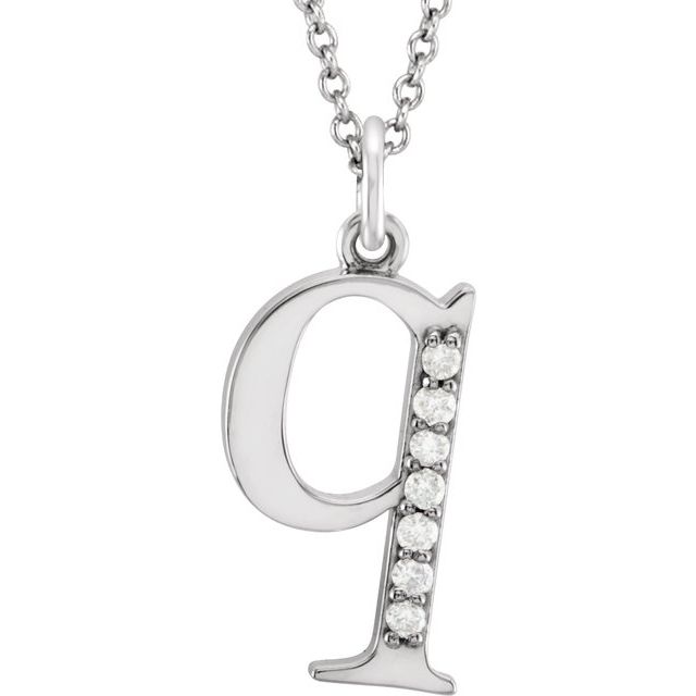 14K White .03 CTW Natural Diamond Lowercase Initial Q 16" Necklace