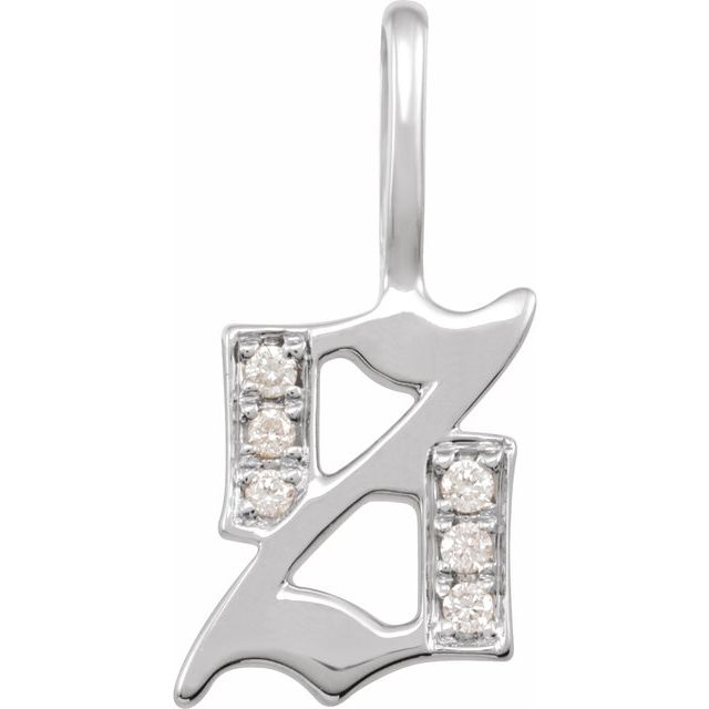 Description: 0.045 Ctw Natural Diamond Gothic Initial Charm Pendant