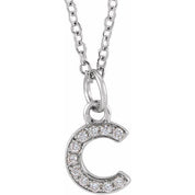 / Necklace / Set / 14K White / Initial C / Natural Diamond / Round / .85 Mm / I1, H+ :: 0.04 Ctw / 16-18 In / Polished / .04 Ctw Natural Diamond Petite Initial Necklace