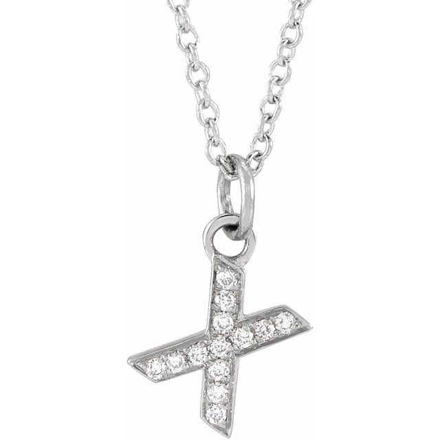 / Necklace / Set / 14K White / Initial X / Natural Diamond / Round / .85 Mm / I1, H+ :: 0.04 Ctw / 16-18 In / Polished / .04 Ctw Natural Diamond Petite Initial Necklace