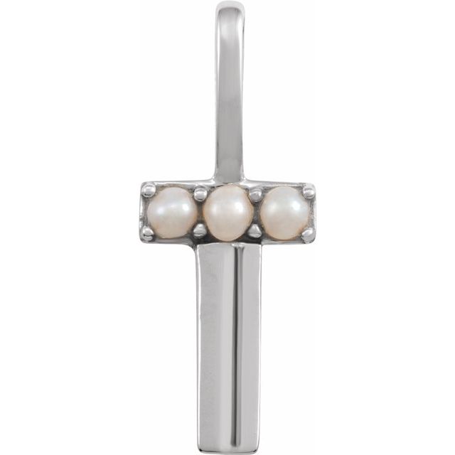 14K White Cultured White Freshwater Pearl Initial T Charm/Pendant