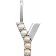 14K White Cultured White Freshwater Pearl Initial Y Charm/Pendant