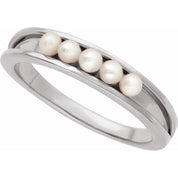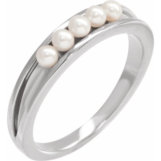 / Ring / Set / 14K White / Cultured White Seed Pearl / Pearl / 2.5 Mm / Polished / Cultured Pearl Stackable Ring