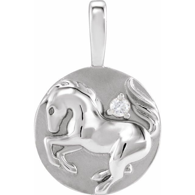 / Pendant / Set / 14K White / Horse / Natural Diamond / Round / 1.5 Mm / I1, G-H :: 0.015 Ct / Polished / .015 Ct Natural Diamond Chinese Zodiac Pendant
