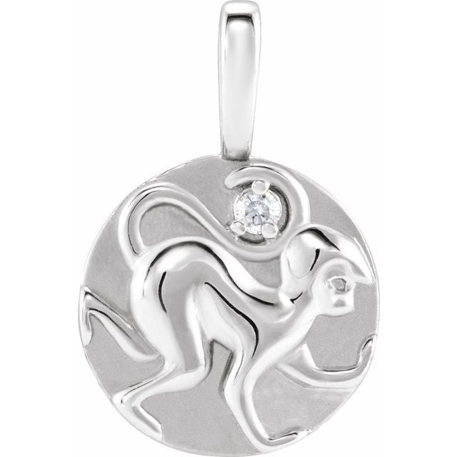 / Pendant / Set / 14K White / Monkey / Natural Diamond / Round / 1.5 Mm / I1, G-H :: 0.015 Ct / Polished / .015 Ct Natural Diamond Chinese Zodiac Pendant