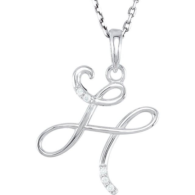 14K White Gold .025 CTW Natural Diamond Initial H 18" Necklace