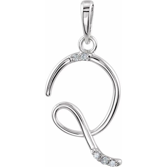 14K White Gold .025 CTW Natural Diamond Initial Q Pendant