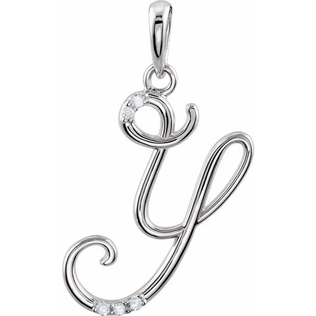 14K White Gold .025 CTW Natural Diamond Initial Y Pendant