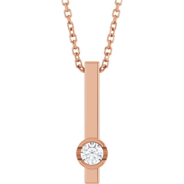 / Necklace / Set / 14K Rose / Round / Natural Diamond / 3Mm :: 1/10 Ct / I1, G-H / 16-18 In / Polished / 1/10 Ct Natural Diamond Solitaire Bar Necklace