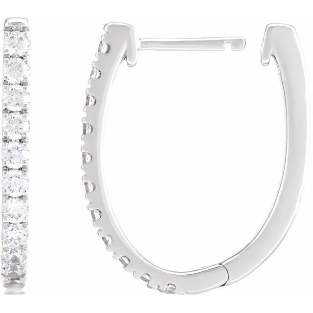 / Earring / Set / 14K White / 21 X 15.48 Mm / 2 Mm / Lab-Grown Diamond / Round / 2Mm :: 3/4 Ctw / Pair / Hinged / Polished / 3/4 Ctw Lab-Grown Diamond Hoop Earrings