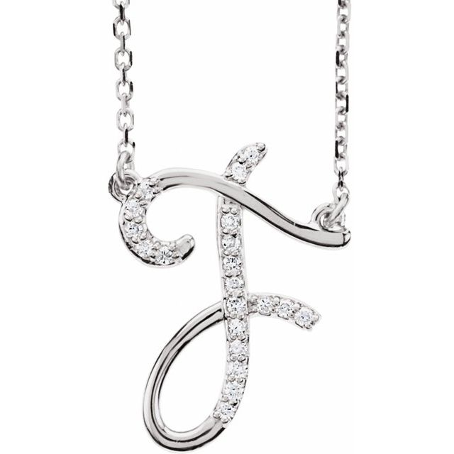 14K White Gold .08 CTW Natural Diamond Initial F 16" Necklace