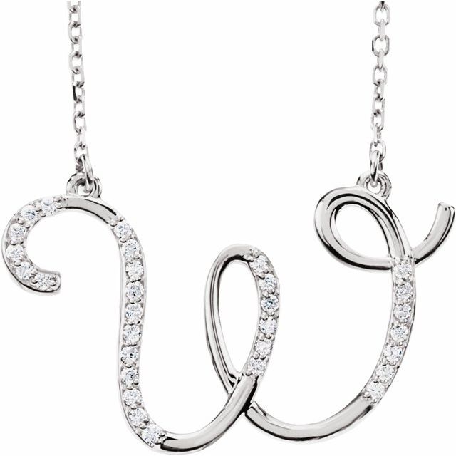 14K White Gold 1/10 CTW Natural Diamond Initial W 16" Necklace