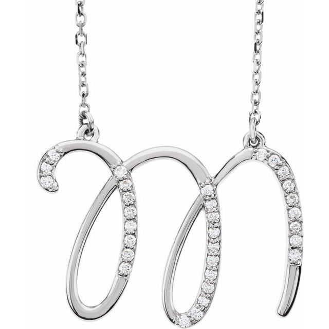 Elevate your jewelry collection with the stunning 14K White Gold Initial M Necklace, featuring 1/8 CTW of exquisite natural diamonds. This elegant piece is perfect for personalizing your style or gifting to someone special. Crafted with meticulous attention to detail, it showcases a beautiful 'M' initial, making it a meaningful keepsake for any occasion.