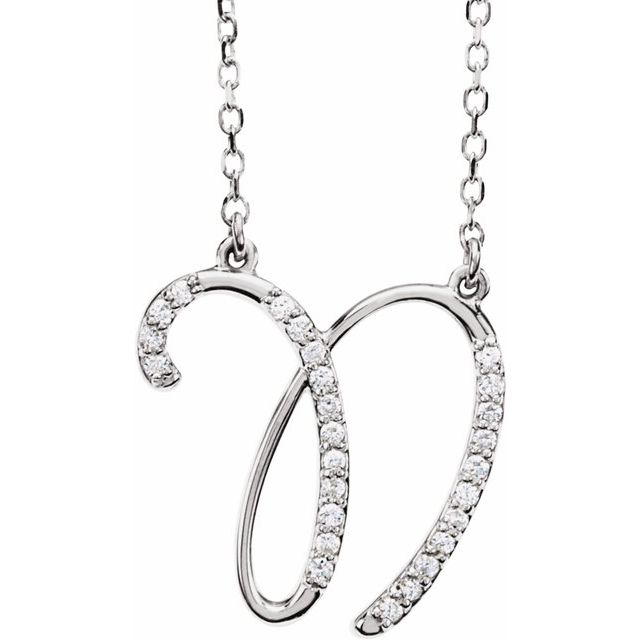 14K White Natural Diamond Initial N Necklace - 1/10 CTW