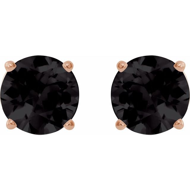 / 14K Rose / Set / Round / Natural Onyx / Pair / 6 Mm / Friction / Friction Backs Included / 4-Prong / Polished / Natural Onyx Stud Earrings