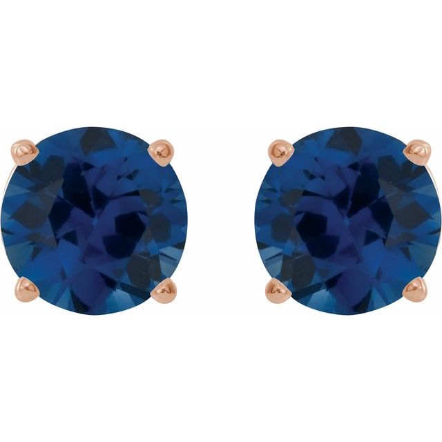 / 14K Rose / Set / Round / Lab-Grown Blue Sapphire / Pair / 8 Mm / Friction / Friction Backs Included / 4-Prong / Polished / Lab-Grown Blue Sapphire Stud Earrings