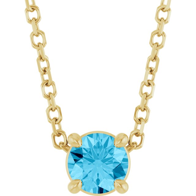 / Necklace / Set / 14K Yellow / Round / Natural Aquamarine / 4 Mm / 16-18 In / Polished / Natural Aquamarine Solitaire Slide Necklace