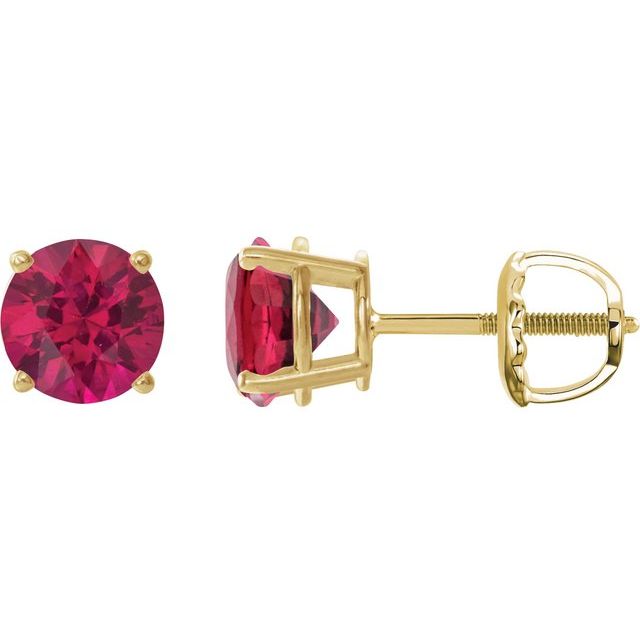 / 14K Yellow / Set / Round / Lab-Grown Ruby / Pair / 6 Mm / Threaded / Threaded Backs Included / 4-Prong / Polished / Lab-Grown Ruby Stud Earrings