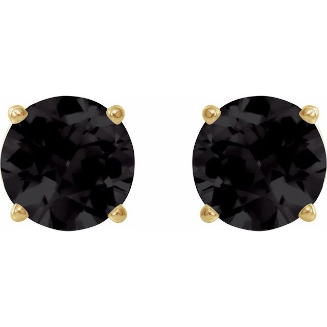 / 14K Yellow / Set / Round / Natural Onyx / Pair / 6 Mm / Threaded / Threaded Backs Included / 4-Prong / Polished / Natural Onyx Stud Earrings
