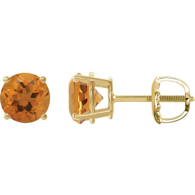 / 14K Yellow / Set / Round / Natural Citrine / Pair / 7 Mm / Threaded / Threaded Backs Included / 4-Prong / Polished / Natural Citrine Stud Earrings