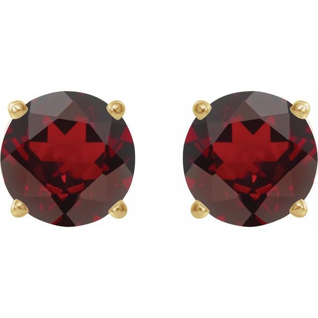 / 14K Yellow / Set / Round / Natural Mozambique Garnet / Pair / 8 Mm / Friction / Friction Backs Included / 4-Prong / Polished / Natural Mozambique Garnet Stud Earrings