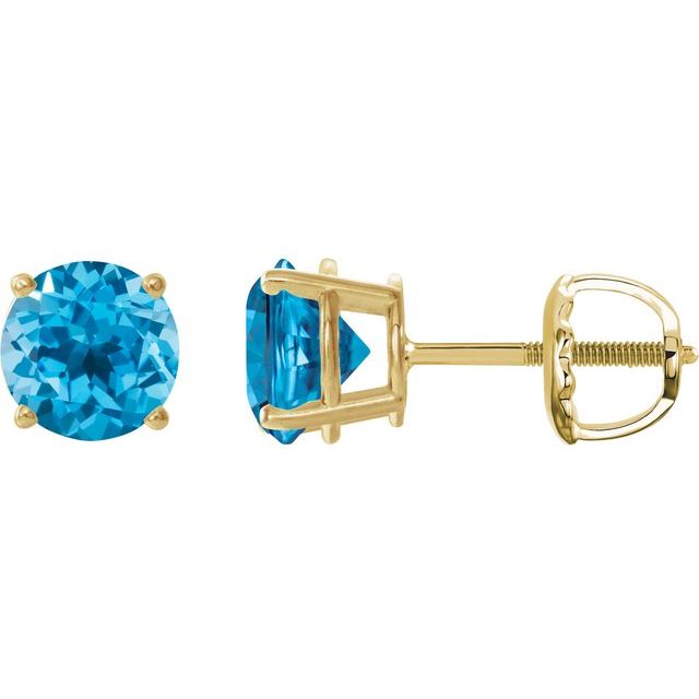 / 14K Yellow / Set / Round / Natural Swiss Blue Topaz / Pair / 8 Mm / Threaded / Threaded Backs Included / 4-Prong / Polished / Natural Swiss Blue Topaz Stud Earrings
