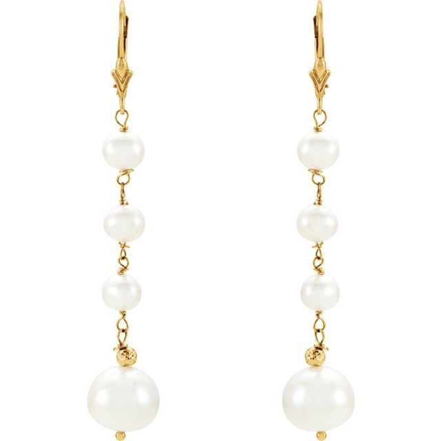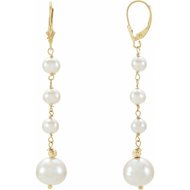/ Earring / Set / Cultured White Freshwater Pearl / Pearl / 10-11 Mm / 14K Yellow / Cultured White Freshwater Pearl / Pair / Leverbacks / Polished / Cultured White Freshwater Pearl Earrings
