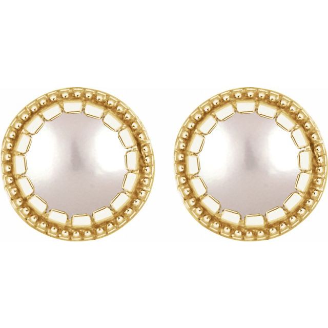 / 14K Yellow / Set / Pearl / Cultured White Freshwater Pearl / Pair / 4 Mm / Friction / Friction Backs Included / Bezel / Polished / Cultured White Freshwater Pearl Earring