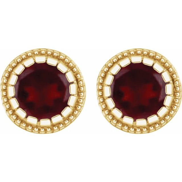 / 14K Yellow / Set / Round / Natural Mozambique Garnet / Pair / 4 Mm / Friction / Friction Backs Included / Bezel / Polished / Natural Garnet Birthstone Earrings With Backs