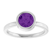 Platinum 6.5 mm Natural Amethyst Ring
