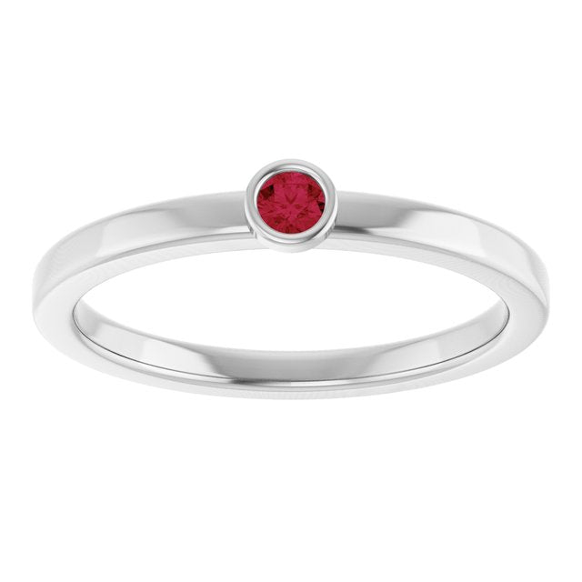 / Ring / Set / Sterling Silver / Natural Ruby / Round / 2.5 Mm / Polished / Natural Ruby Solitaire Ring