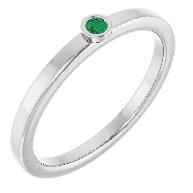 Sterling Silver 2 mm Lab-Grown Emerald Ring