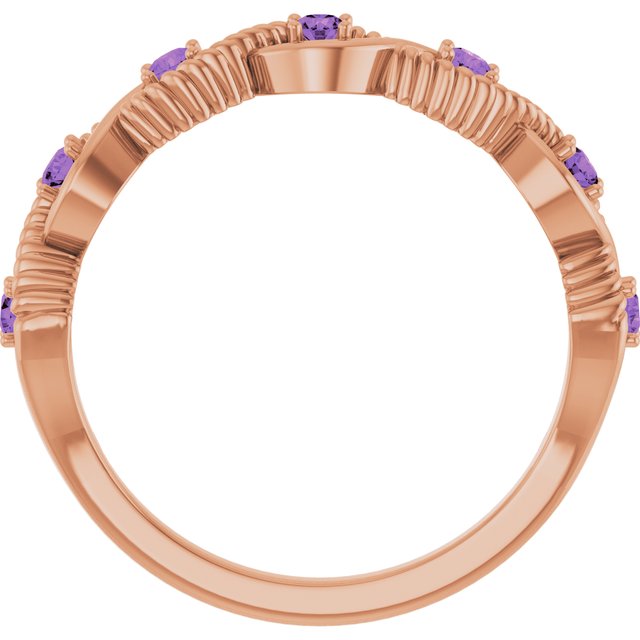 / Ring / Set / 14K Rose / Natural Amethyst / Round / 2 Mm / Polished / Natural Amethyst Stackable Ring