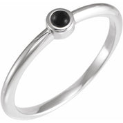 / Ring / Set / 14K White / Natural Black Onyx / Round / 4 Mm / Polished / Cabochon Natural Onyx Solitaire Stackable Ring
